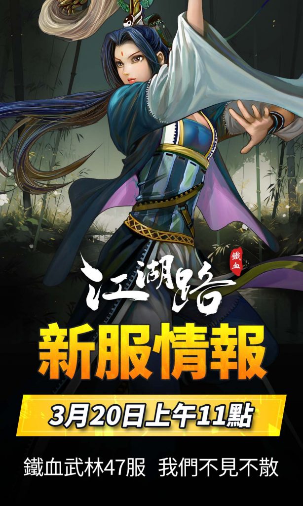 新聞 鐵血武林47服3月20日新服集結!!! 2026-03-10 親愛的大俠們: 《鐵血江湖路》將於3月20日11:00開啟全新伺服器“鐵血武林47服”。 3月20日11:00,鐵血武林47服,我們與各路大俠,不見不散! 【新服備註】 新服開啟後將開啟【新服專題活動】,參與活動可獲得豐厚獎勵! 【下載方式】 Android用戶可點擊這裡下載軟體 IOS用戶可點擊這裡下載軟體 達高科創 3月10日